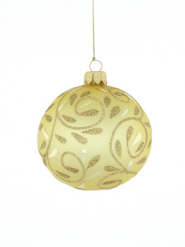 A set of 6 glass Christmas baubles in gold color with a branch motif.