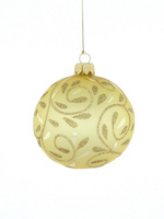 A set of 6 glass Christmas baubles in gold color with an ornamental decoration