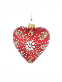 Set of 6 glass Christmas tree baubles in the shape of a burgundy heart