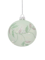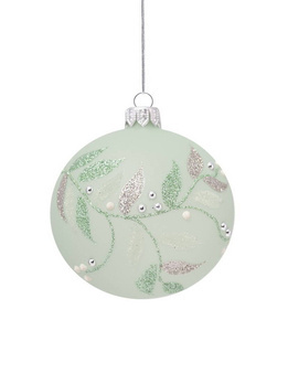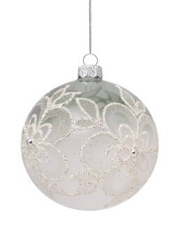 Set of 4 glass Christmas baubles with a glitter flower pattern and pearls