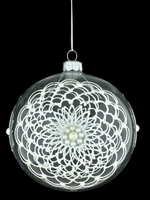 A set of 4 glass Christmas baubles in white color with ornamental decoration.