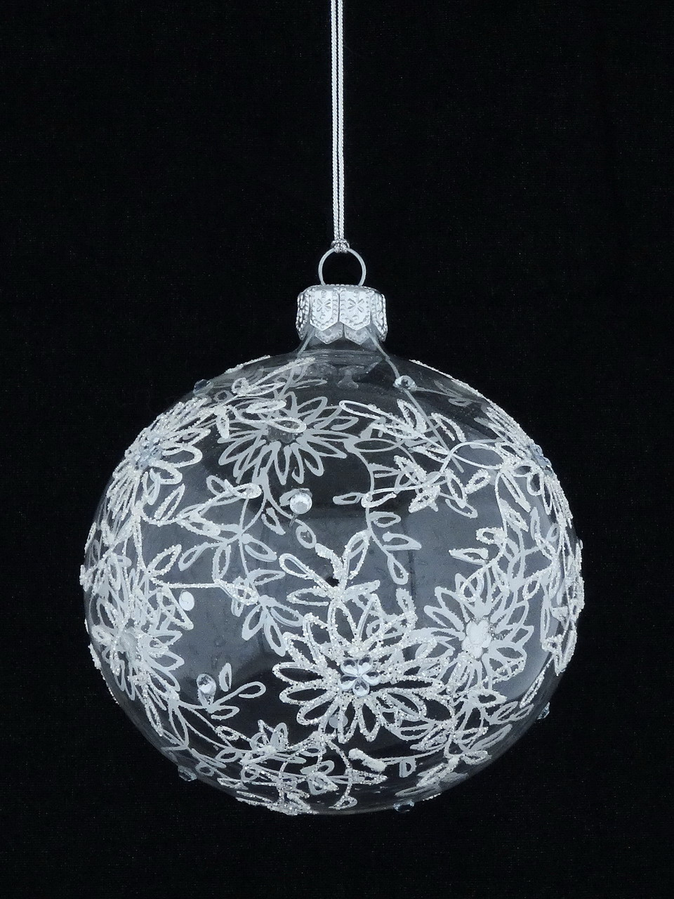 Set of 4 glass Christmas baubles with a glitter pattern and stones