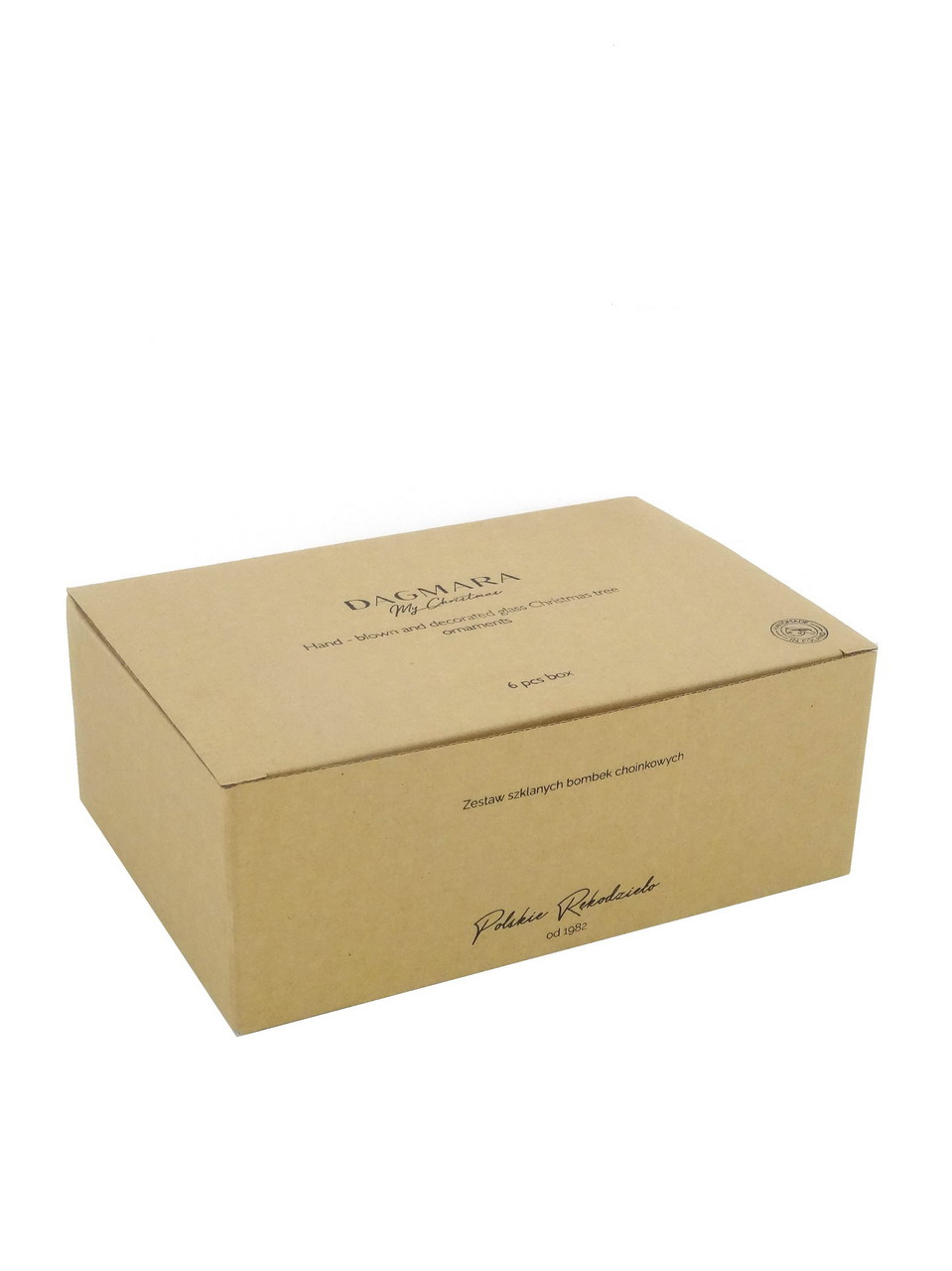 Set of 6 glass Christmas tree baubles in gold color with a crystal