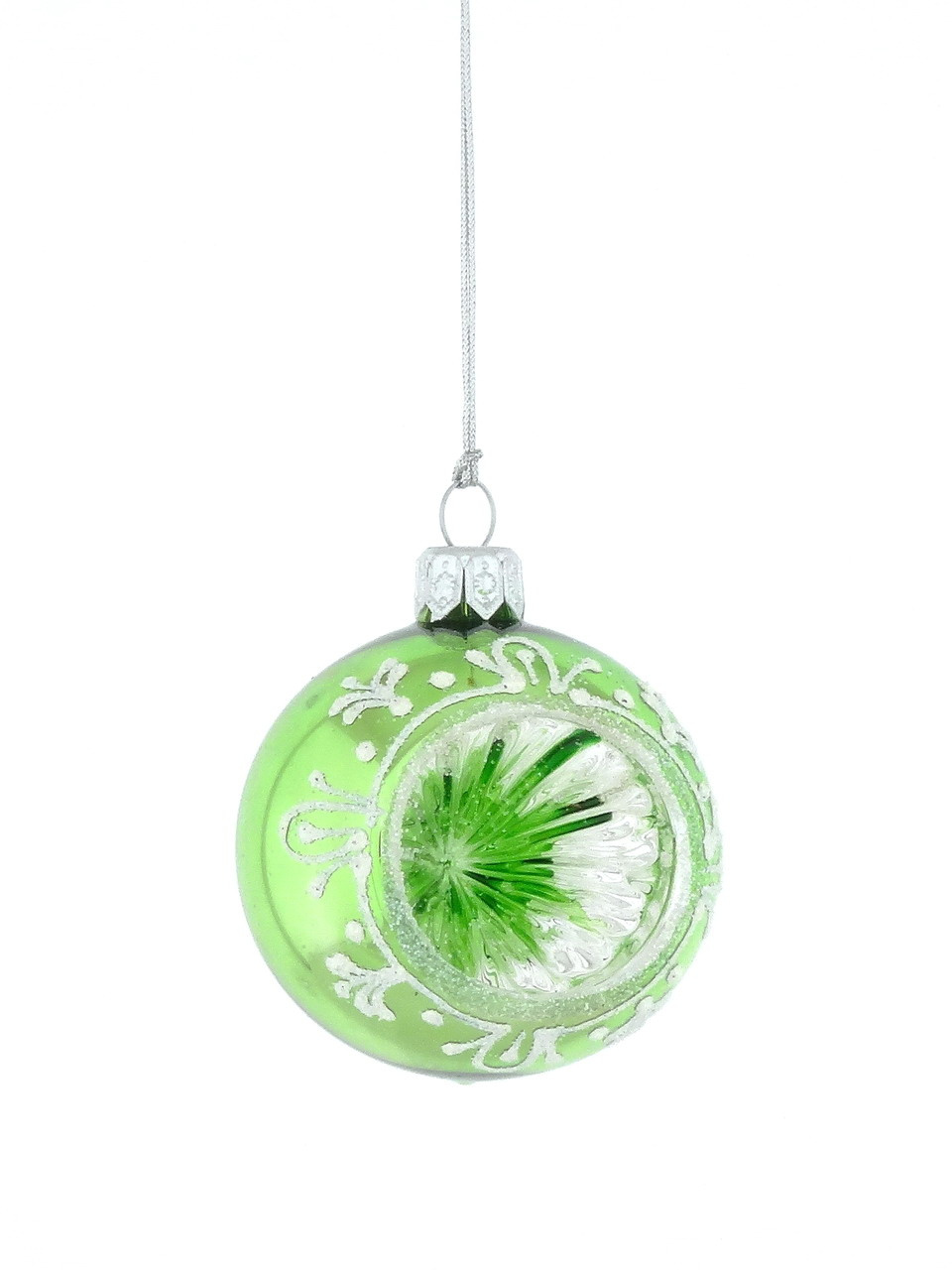 Glass bauble reflector with ornamental motif