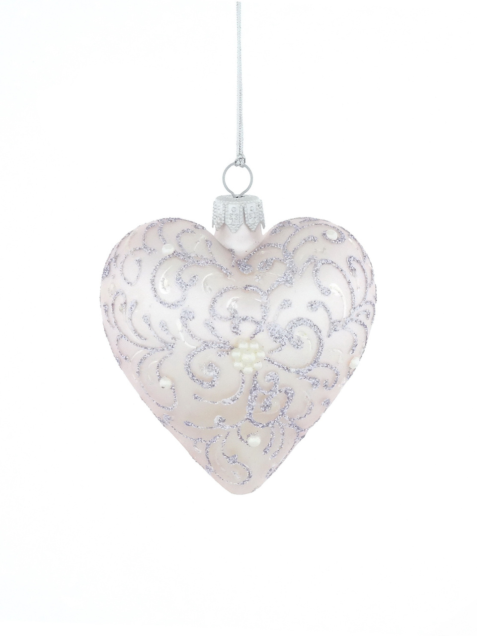 Heart-shaped glass bauble with a plant motif
