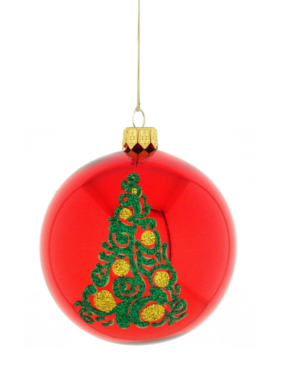 A set of 6 glass Christmas baubles with a Christmas tree motif.