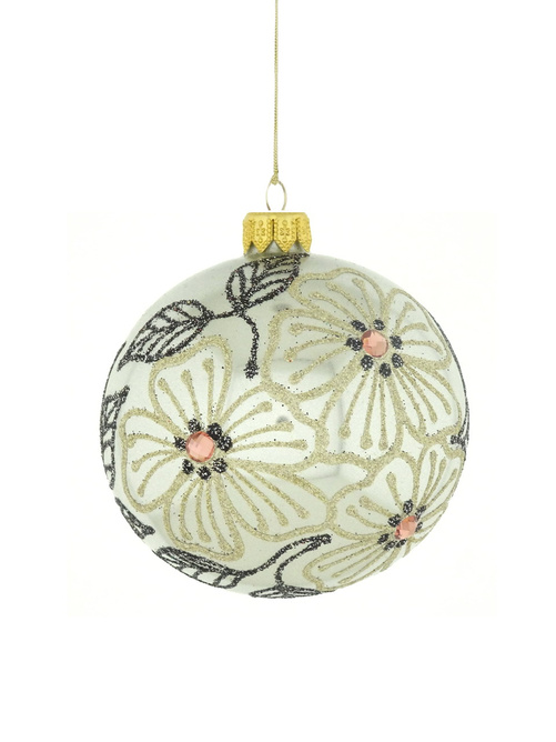 A set of 6 glass Christmas baubles with a floral motif