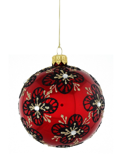 A set of 6 glass Christmas baubles with glitter decoration in black and gold, and stones
