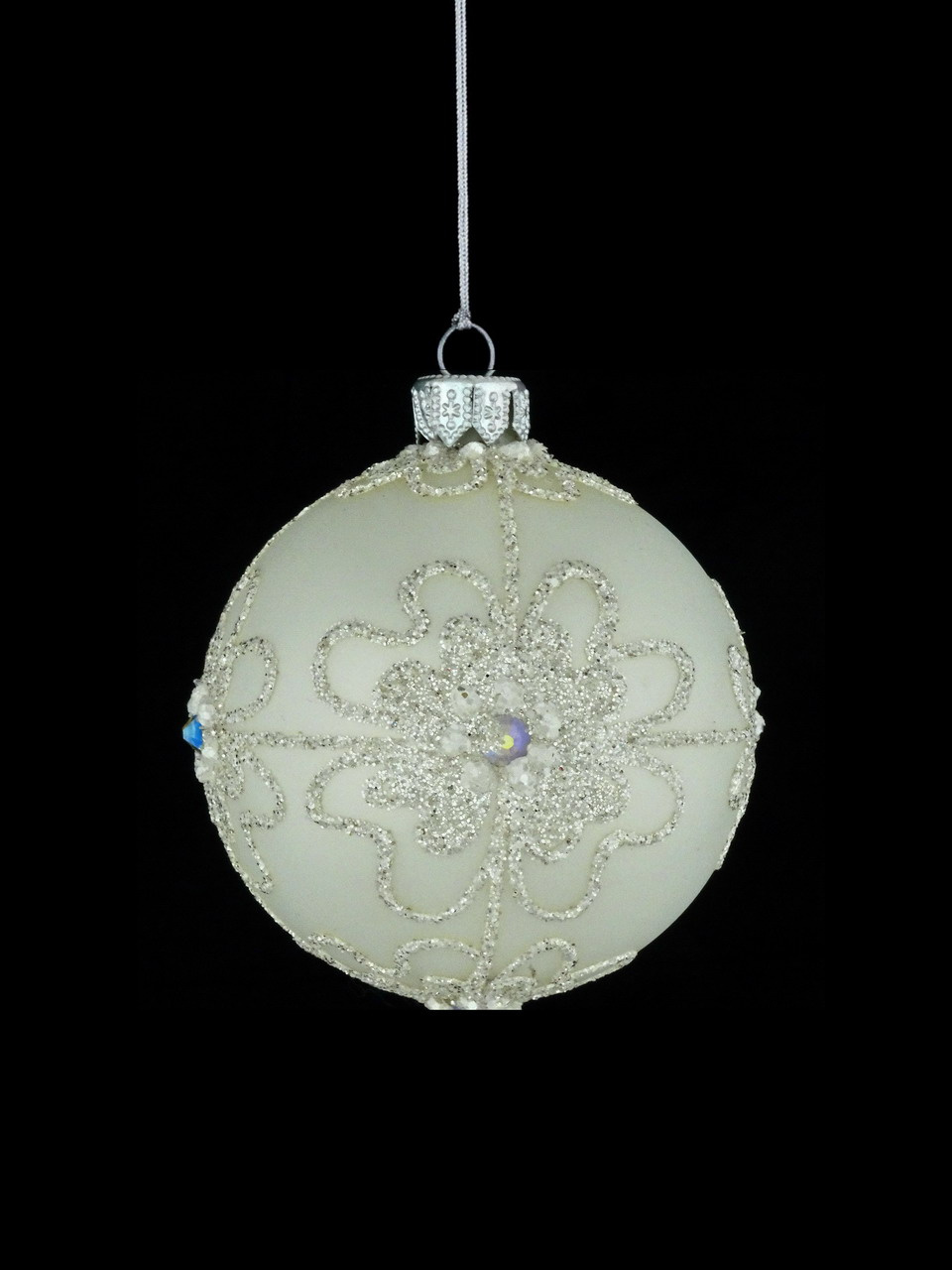 Set of 6 glass Christmas baubles with glitter decoration in silver color and stones