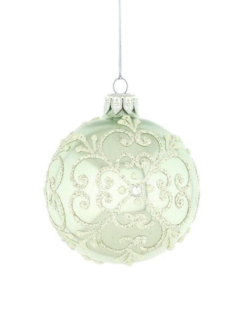 Set of 6 glass Christmas baubles with glitter decoration in silver color and silver stones