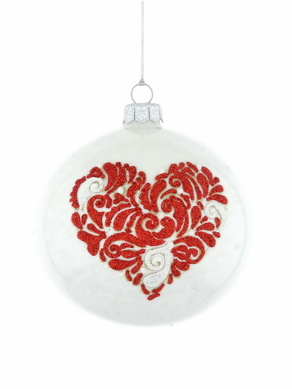 Glass Christmas tree baubles with heart motif