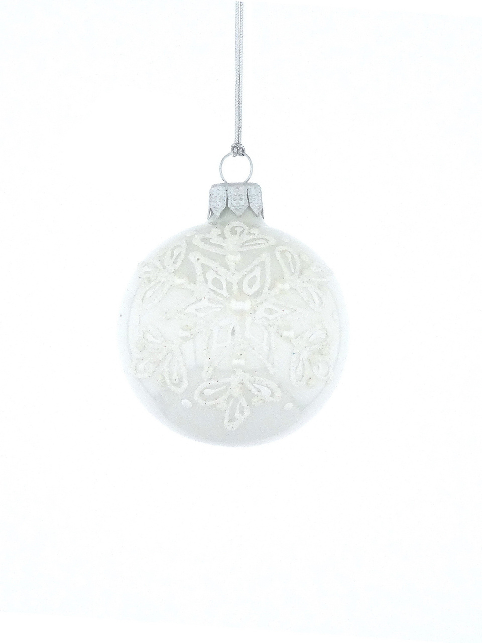 Zestaw 6 szkla Set of 6 glass Christmas tree baubles in white with a snowflake motifnych