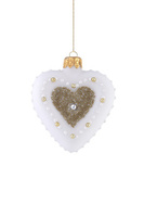 Zestaw 6 szklanych bombek choinkowych w kształcie serca w białym kolorze