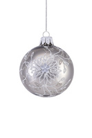 Zestaw 6 szklanych bombek choinkowych w szarym kolorze z dekoracją ornamentową