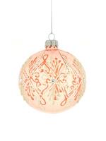 Zestaw 6 szklanych bombek choinkowych w pastelowo różowym kolorze z dekoracją ornamentową