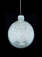 Szklana bombka choinkowa z dekoracja ornamentową.