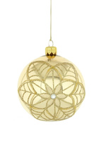 Zestaw 4 szklanych bombek choinkowych jasno beżowym kolorze z dekoracją ornamentową