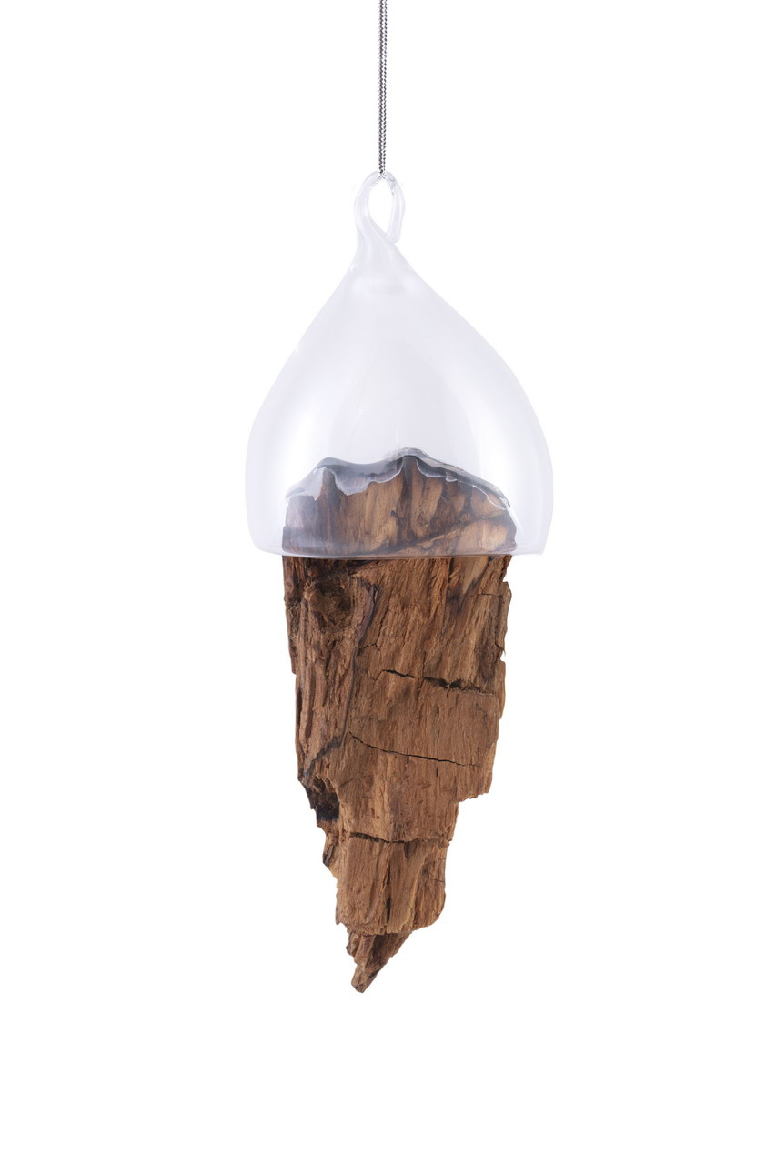 Szklana bombka choinkowa -nieregularny kształt z naturalnym drewnem
