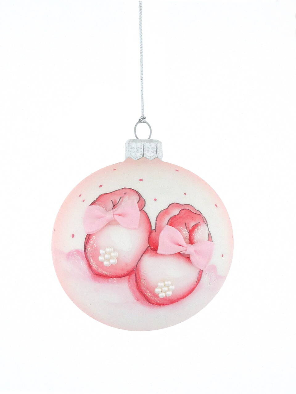Szklana bombka choinkowa z motywem bucików dziecięcych