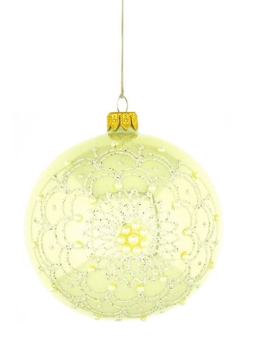 Zestaw 4 szklanych bombek choinkowych w szampanowym kolorze z dekoracją ornamentową
