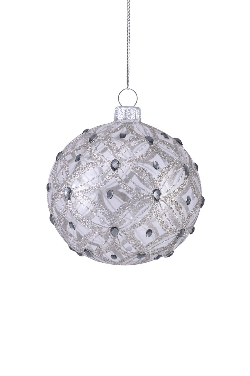 Zestaw 4 szklanych bombek choinkowych z brokatowym wzorem geometrycznym