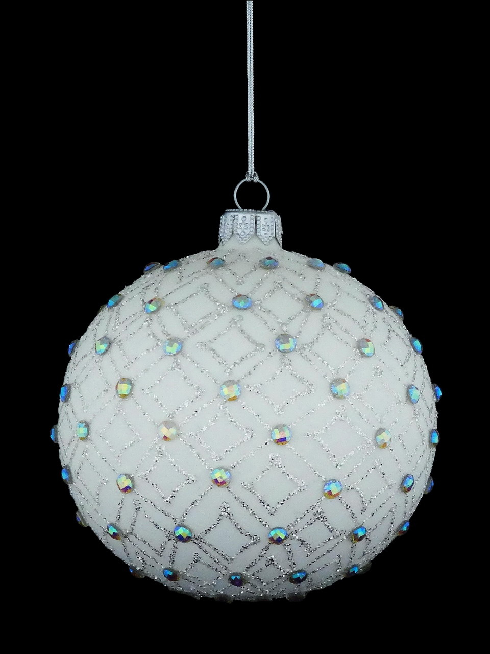 Zestaw 4 szklanych bombek choinkowych z brokatowym wzorem i kryształkami