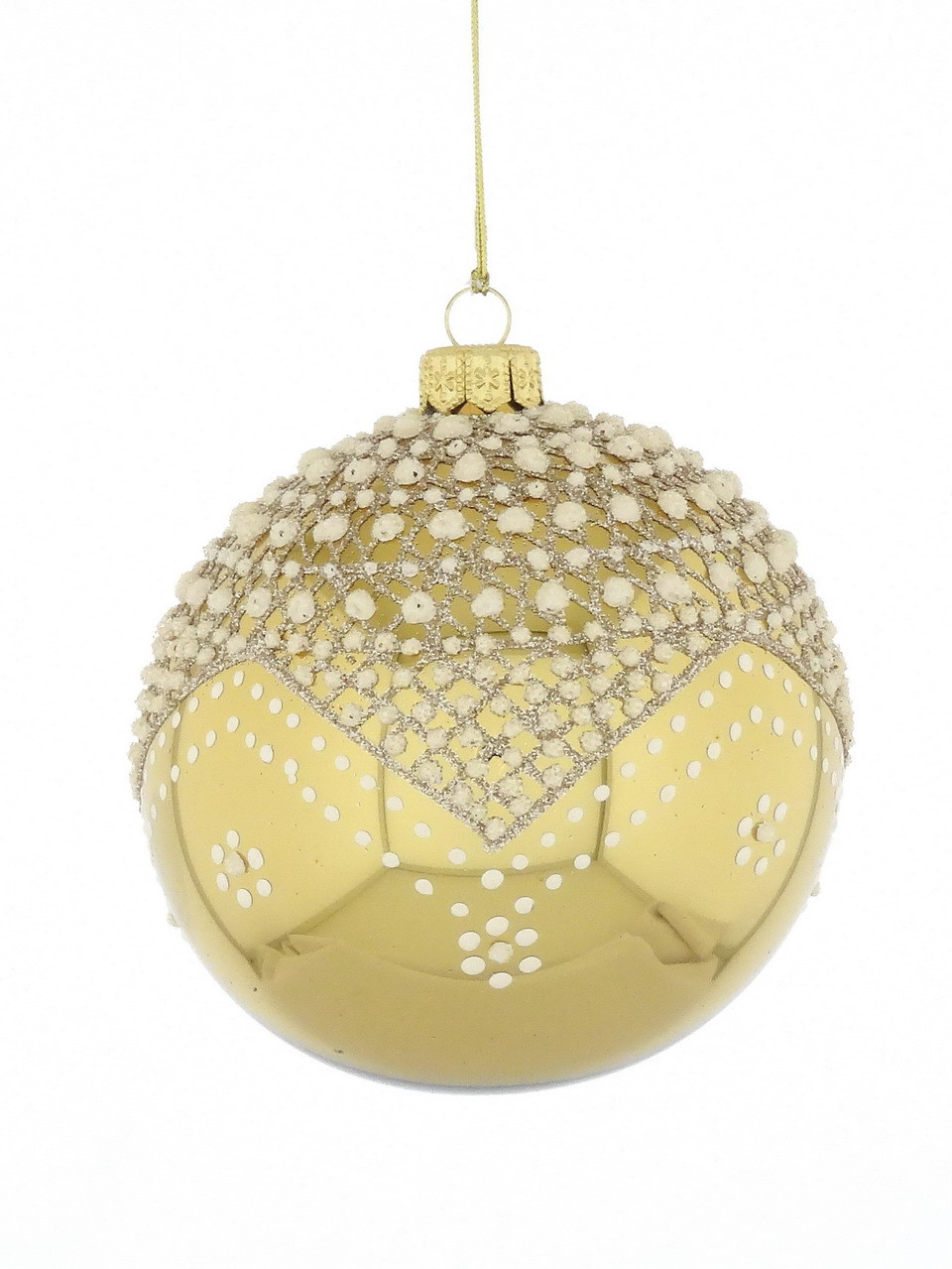 Zestaw 4 szklanych bombek choinkowych ze złotym ornamentem od góry