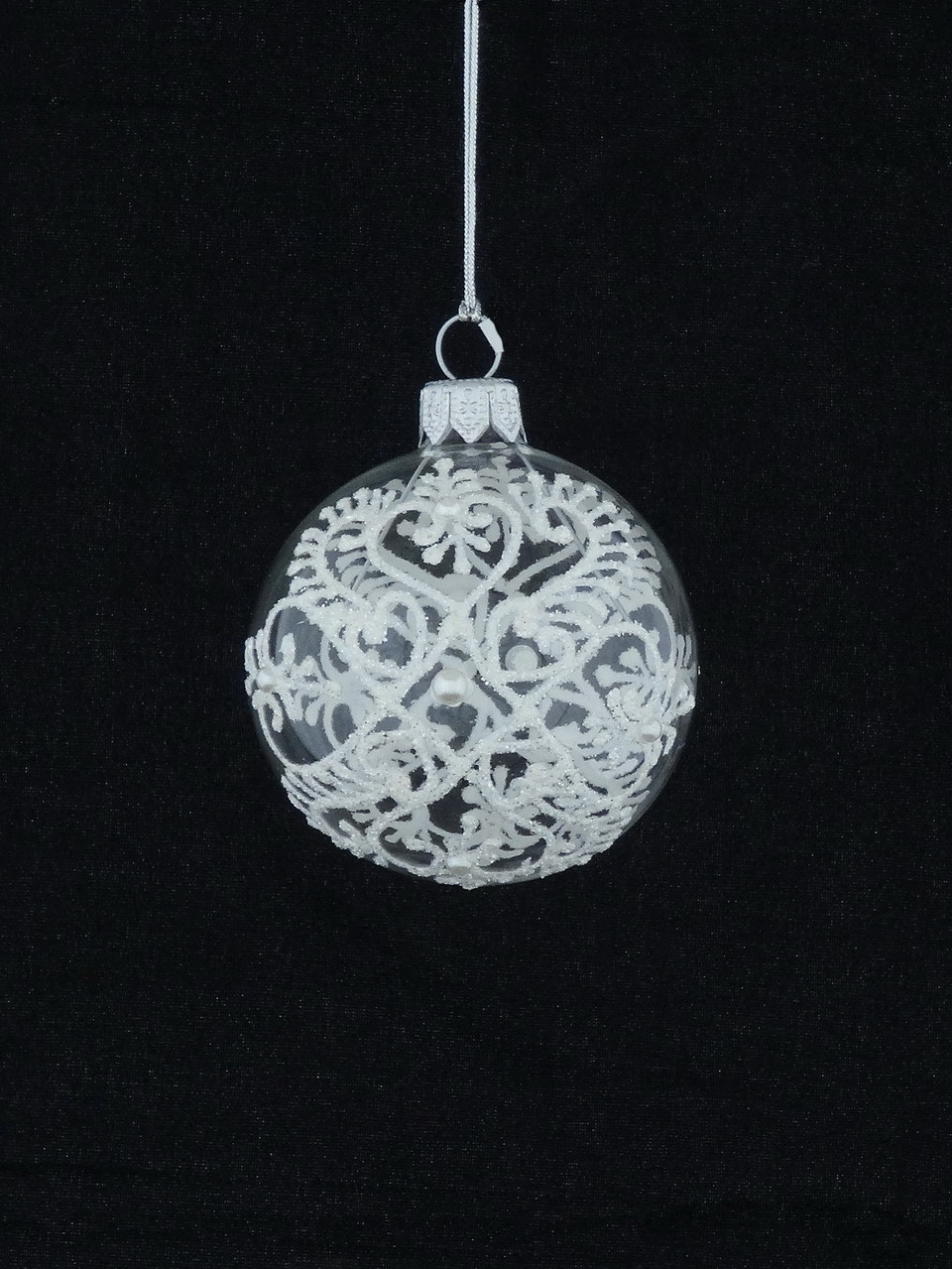 - dekoracja wykonana białym brokatem z białymi perełkami na przezroczystym tle