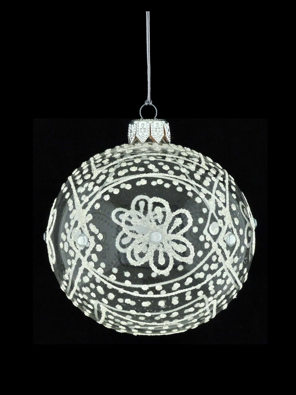 Zestaw 6 szklanych bombek choinkowych w białym kolorze z dekoracją ornamentową