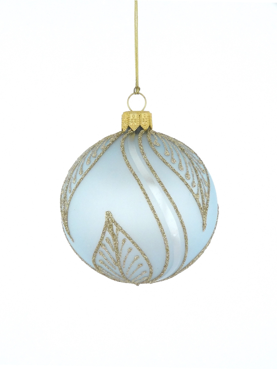 Zestaw 6 szklanych bombek choinkowych w błękitnym kolorze i motywem gałązek