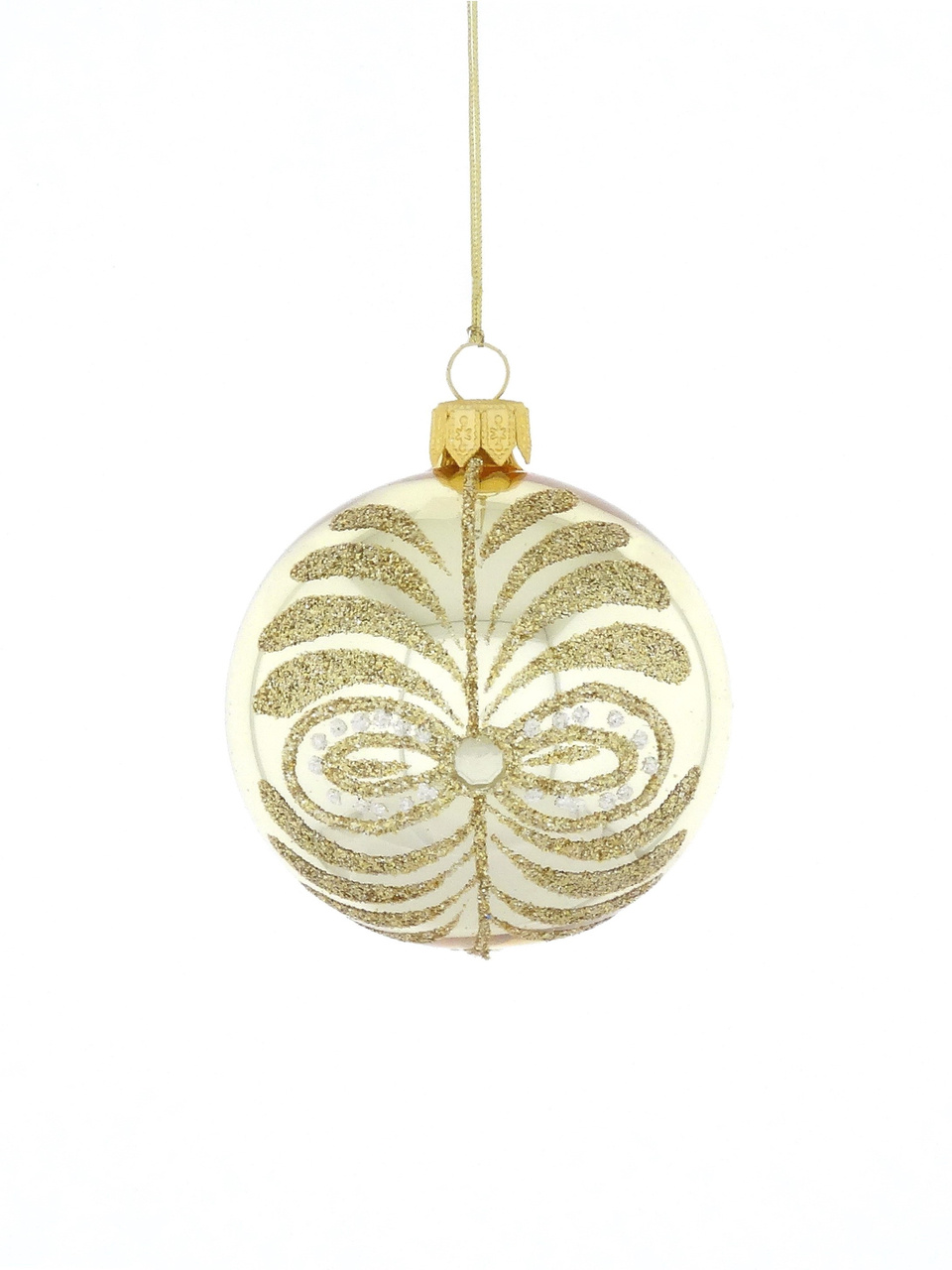Zestaw 6 szklanych bombek choinkowych w jasno złotym kolorze ze złotą dekoracją