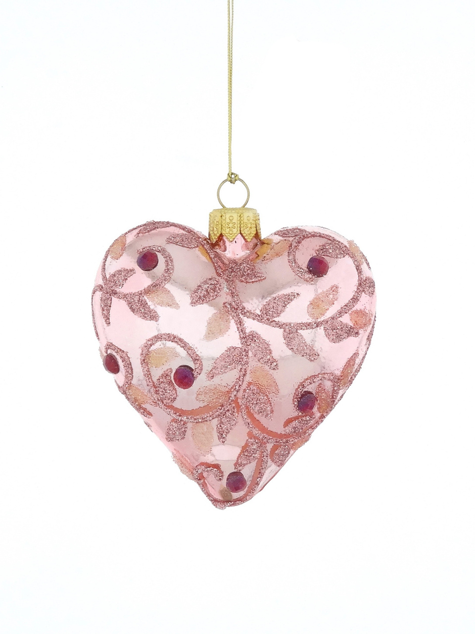Zestaw 6 szklanych bombek choinkowych w kształcie serca z motywem gałązek