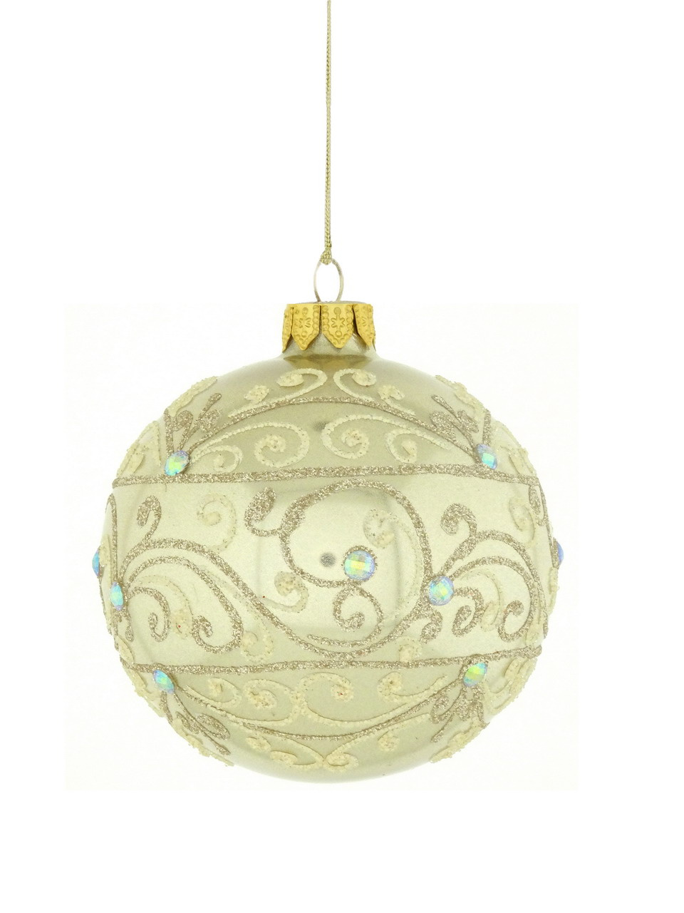 Zestaw 6 szklanych bombek choinkowych w szampanowym kolorze z dekoracją ornamentową