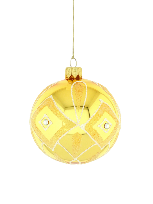 Zestaw 6 szklanych bombek choinkowych w złotym kolorze z dekoracją ornamentową