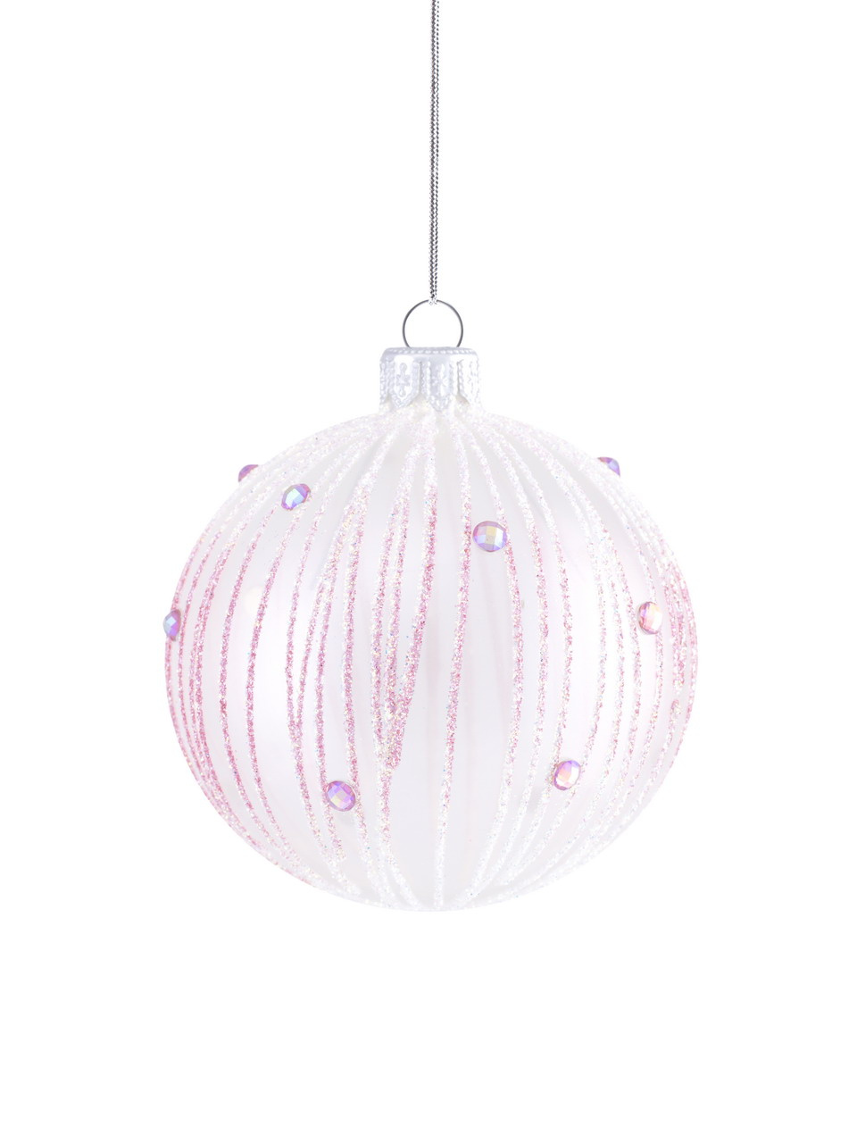 Zestaw 6 szklanych bombek choinkowych  z brokatowym wzorem i kamykami