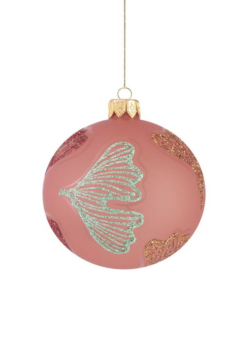 Zestaw 6 szklanych  bombek choinkowych z brokatowym wzorem liści miłorzębu