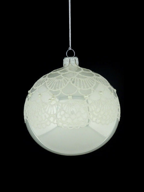 Zestaw 6 szklanych bombek choinkowych z brokatową dekoracją w białym kolorze oraz srebrnymi kamieniami