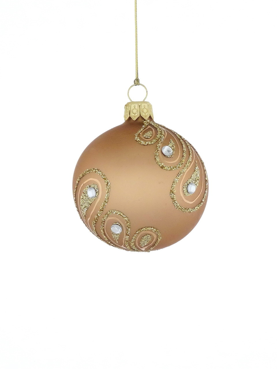 Zestaw 6 szklanych bombek choinkowych z motywem gałązek w szampanowym kolorze