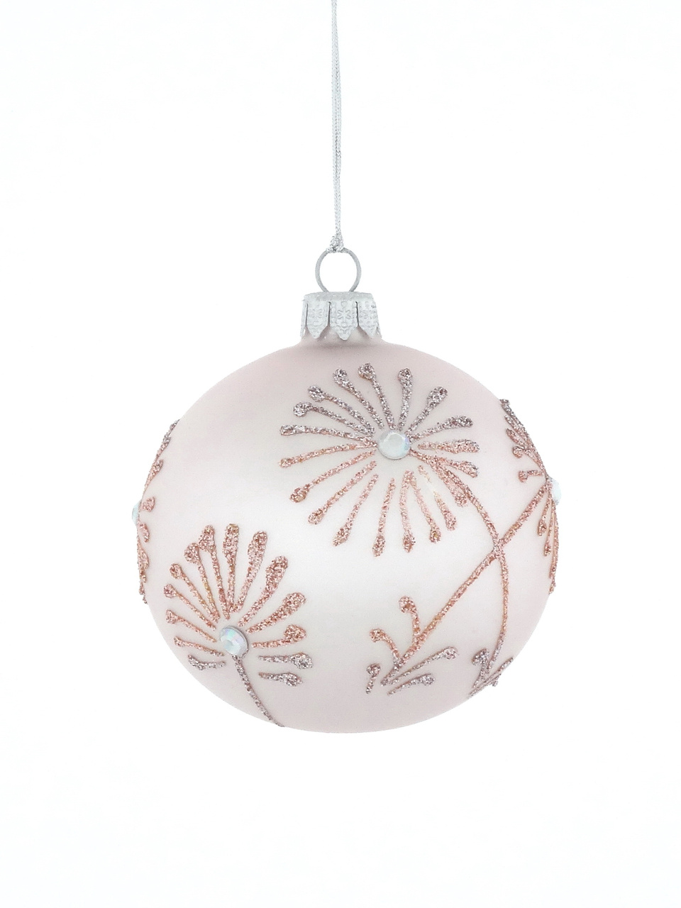 Zestaw 6 szklanych bombek choinkowych z motywem koprów na lawendowym tle