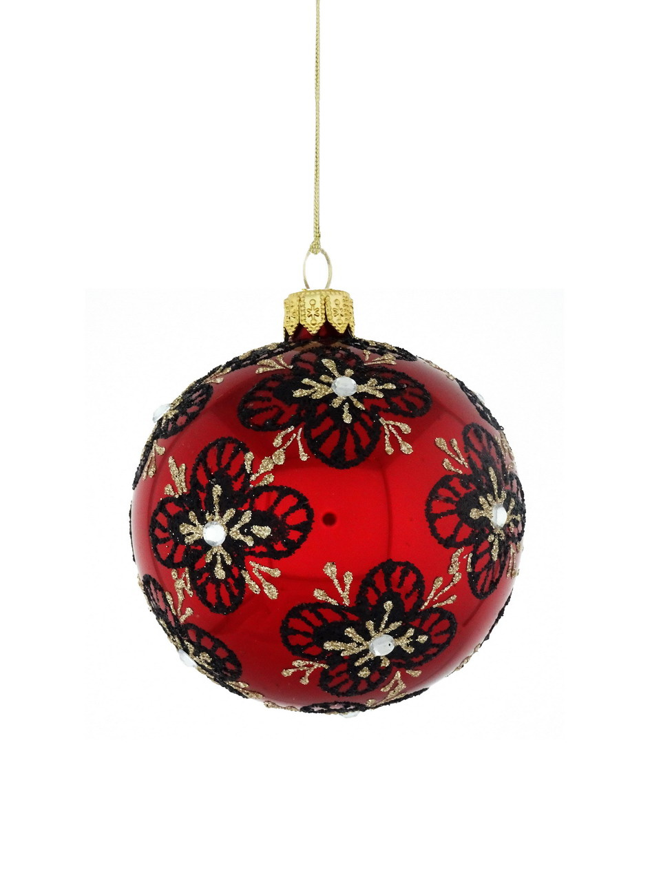 Zestaw 6 szklanych bombek choinkowych z motywem kwiatów