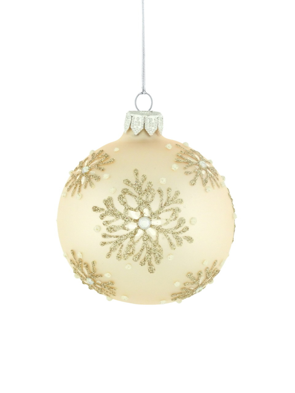 Zestaw 6 szklanych bombek choinkowych z brokatową dekoracją w złotym kolorze i białymi perełkami