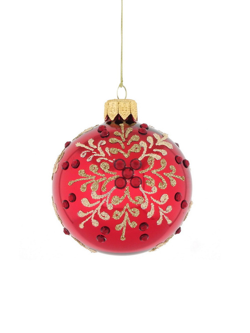 Zestaw 6 szklanych bombek choinkowych z brokatowa dekoracją.